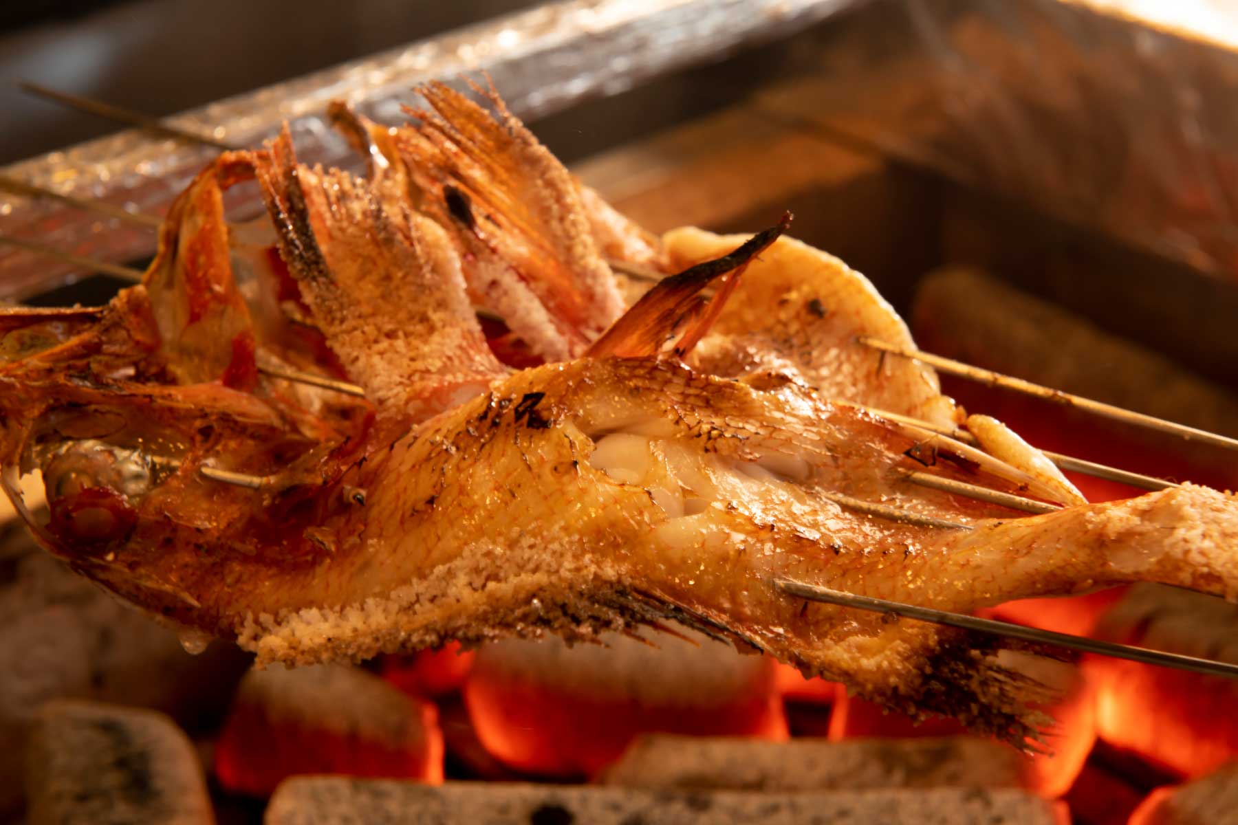 ”原始焼き”で仕上げる「きんきの塩焼きと